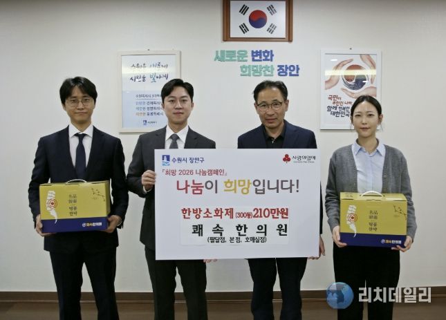 이번 후원은 지역 내 어려운 이웃들의 건강한 일상 지원을 위해 마련됐으며, 기부된 한방소화제는 장안구 내 저소득 취약계층에게 전달될 예정이다.