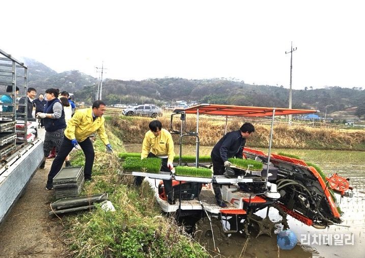 리치데일리 김상현 기자 | 순창군이 10일 풍산면에서 올해 첫 모내기를 실시하며 본격적인 영농철의 시작을 알렸다. 이번에 심은 벼는 조생종(해담벼) 품종으로, 일반적인 모내기 시기보다 앞당겨 이앙함으로써 기후 변화에 대응, 조기 수확을 목표로 한다.