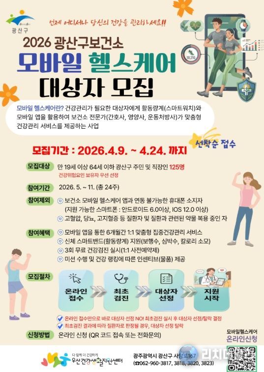 리치데일리 김상현 기자 | 광주 광산구는 정보통신기술(ICT)을 활용해 주민들의 건강을 챙기는 ‘2026년 모바일 헬스케어’ 사업을 본격적으로 운영한다고 밝혔다.