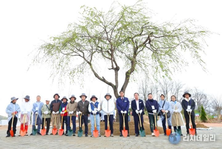 특히 본격적인 나무심기에 앞서 진행된 감사패 전달식에서는 재일본대한민국민단 고(故) 박병헌 단장(2021년 작고)의 공로를 기리며 아들 박상규 씨(한일친선협의중앙회 이사)에게 감사패가 전달됐다.