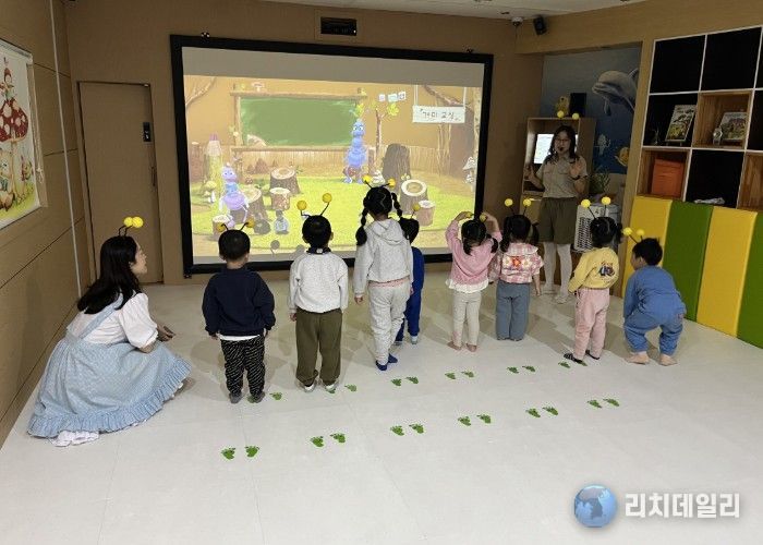 도서관 1층 체험형 동화구연실에서는 매 회차마다 동화 속 세상이 펼쳐지고, 아이들은 이야기를 ‘듣는 사람’이 아닌 ‘주인공’이 되어 그 안으로 들어간다. 대형 스크린에 구현된 생생한 장면 속에서 아이들은 몸을 움직이며 이야기의 흐름을 따라가고, 친구들과 함께 역할을 나누며 자연스럽게 이야기를 완성해 나간다.