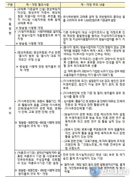 또한 방미통위 규칙 제․개정을 통해 편성위원회 구성과 관련된 종사자 범위 및 종사자 대표의 자격요건을 구체화했다.