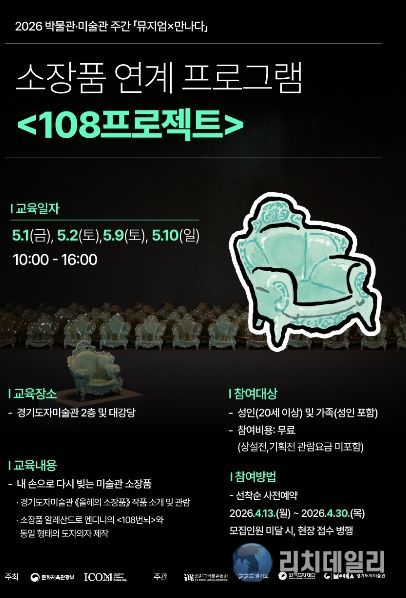 리치데일리 김상현 기자 | 한국도자재단 경기도자미술관이 미술관 소장품을 재해석하고 직접 제작하는 참여형 프로그램 ‘108프로젝트’를 2026 박물관․미술관 주간에 운영하고, 4월 13일부터 참여자를 모집한다.