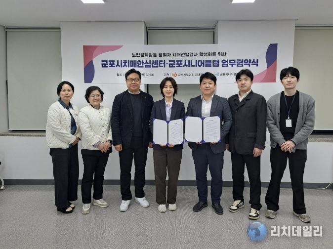 리치데일리 김상현 기자 | 군포시치매안심센터는 4월 9일 군포시시니어클럽과 업무협약을 체결하고 노인공익활동 참여자를 대상으로 한 치매선별검사 확대에 나선다고 밝혔다.