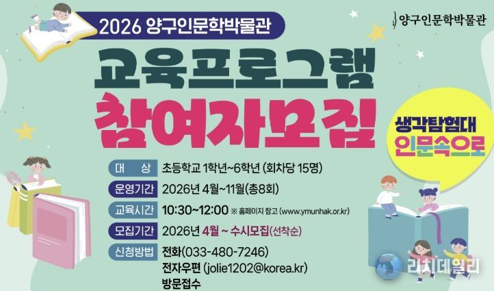 임경빈 양구인문학박물관장은 “이번 프로그램을 통해 아이들이 철학과 문학을 어렵게 느끼지 않고, 탐험하듯 즐겁게 접하며 창의적인 사고력을 기를 수 있기를 바란다”며 “지역 어린이들의 정서적 성장을 돕는 유익한 시간이 될 수 있도록 운영에 최선을 다하겠다”고 말했다.