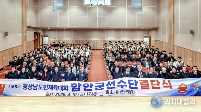 리치데일리 김상현 기자 | 함안군은 지난 10일 함안문화원 대공연장에서 제65회 경남도민체육대회에 참가하는 선수단의 결단식을 개최하고, 대회 선전을 위한 힘찬 출정의 시간을 알렸다고 밝혔다.