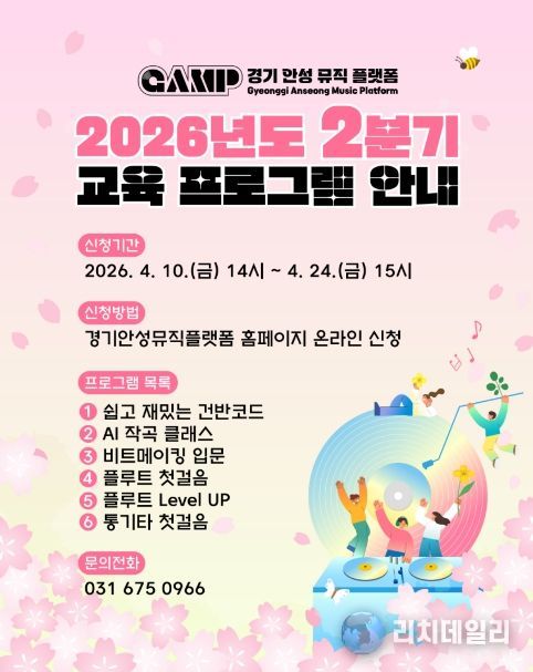 리치데일리 김상현 기자 | 안성맞춤아트홀로 사무실을 임시 이전한 경기안성뮤직플랫폼이 4월 10일부터 24일까지 ‘2026년 2분기 교육 프로그램’ 참여자를 모집한다.