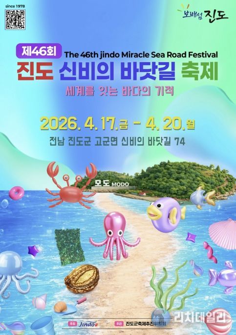 리치데일리 김상현 기자 | 진도군은 ‘세계를 잇는 바다의 기적’을 주제로 한 '제46회 진도 신비의 바닷길 축제'를 오는 17일부터 20일까지 4일간, 고군면 신비의 바닷길 일원에서 개최한다.