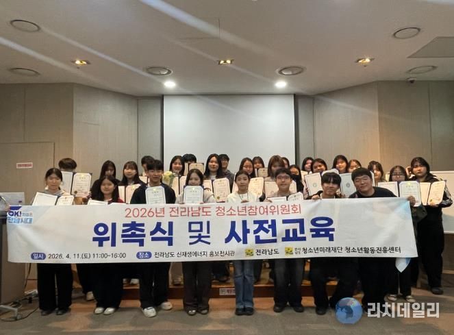 리치데일리 김상현 기자 | (재)전라남도청소년미래재단 청소년활동진흥센터는 4월 11일 전라남도 신재생에너지 홍보전시관 세미나실에서 ‘2026년 전라남도 청소년참여위원회’ 위촉식 및 사전교육을 개최하고 본격적인 활동의 시작을 알렸다.
