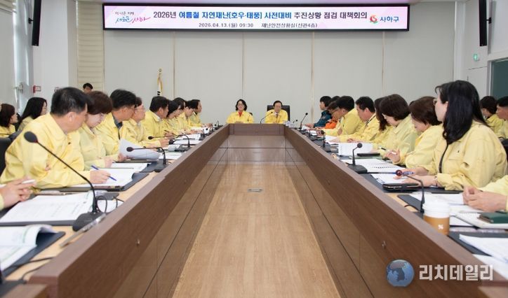리치데일리 김상현 기자 | 부산 사하구는 4월 13일 사하구 재난안전상황실에서 유관기관과 합동으로 ‘2026년 여름철 자연재난 사전대비 추진상황 점검 대책회의’를 개최하고 기관 간 협조체계 구축 및 부서별 추진사항 등을 논의했다.