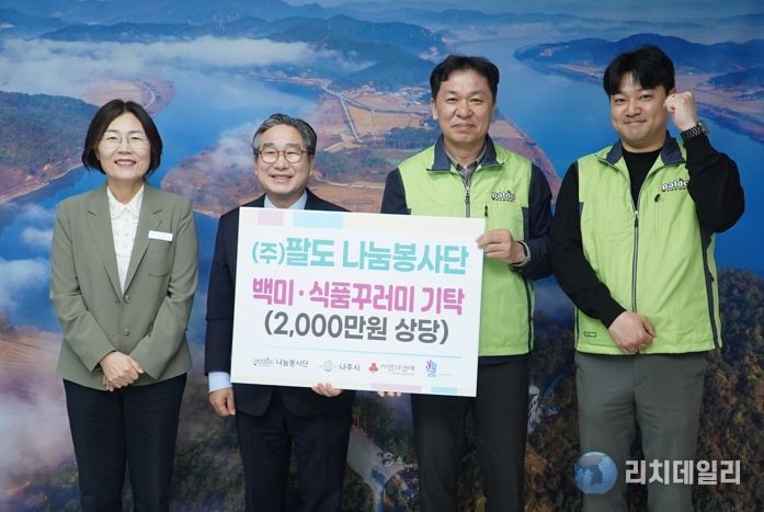 나주시는 15일 ㈜팔도 나눔봉사단이 지역 내 취약계층과 아동들을 위해 2천만 원 상당의 후원 물품을 기탁했다고 밝혔다.