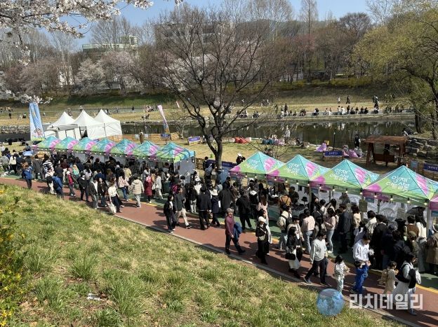 리치데일리 김상현 기자 | 봄기운이 절정을 이룬 4월의 주말, 양재천 일대는 약 10만 명의 나들이객으로 붐비며 그야말로 ‘문전성시’를 이뤘다. 산책로를 따라 펼쳐진 아트마켓에는 아기자기한 수공예품이 시선을 사로잡고, 공연과 체험 프로그램이 더해지며 도심 속 특별한 문화·소비 공간인 양재천길 상권에도 활기가 넘쳤다.