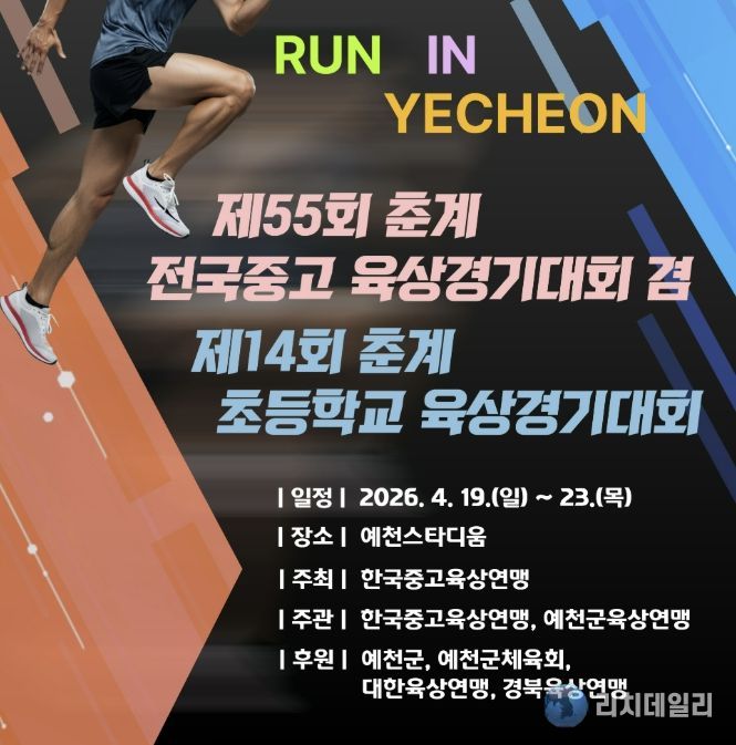 리치데일리 김상현 기자 | 예천군은 오는 19일부터 23일까지 닷새간 예천스타디움에서 '제55회 춘계 전국 중·고 육상경기대회' 및 '제14회 춘계 전국초등학교 육상경기대회'를 개최한다고 밝혔다.