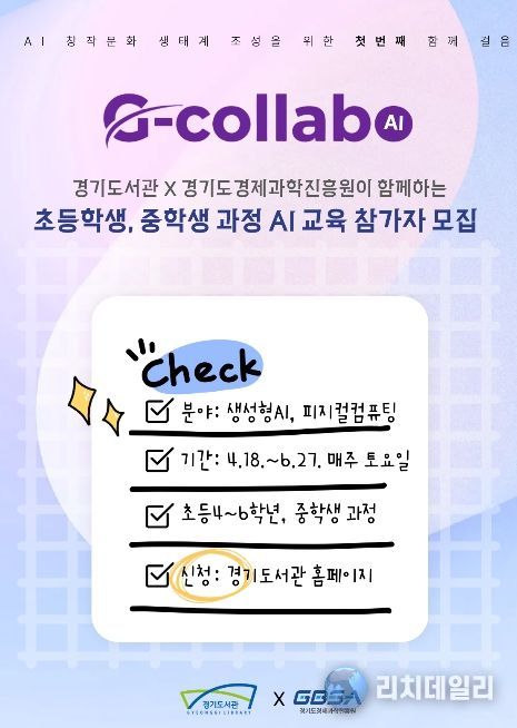 리치데일리 김상현 기자 | 경기도서관은 경기도경제과학진흥원 협업 프로젝트 ‘지-콜라보(G-Collabo)’를 기후환경 중심에서 인공지능(AI) 분야까지 확대하고, 오는 6월까지 초·중등 대상 로봇공학 체험 프로그램을 운영한다.