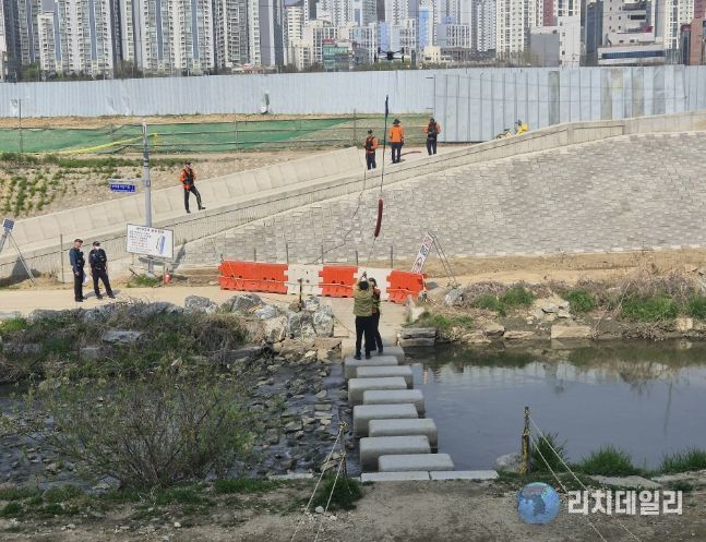 리치데일리 김상현 기자 | 군포시는 4월 13일 안양천 일원에서 시간당 100mm 이상의 극한강우 상황을 가정한 재난 대응 및 복구 훈련을 실시했다.