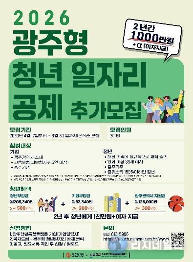 리치데일리 김상현 기자 | 광주광역시는 지역 청년의 자산 형성과 장기근속을 지원하기 위한 ‘광주형 청년 일자리 공제사업’ 참여자 30명을 4월17일부터 6월30일까지 추가 모집한다.