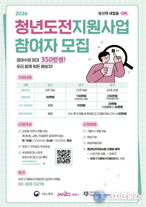 마포구 관계자는 “구직 과정에서 어려움을 겪는 청년들이 다시 도전할 수 있도록 돕는 것이 중요하다”며 “구직에 어려움이 있다면 이번 기회를 통해 도움을 받아보길 바란다”고 말했다.