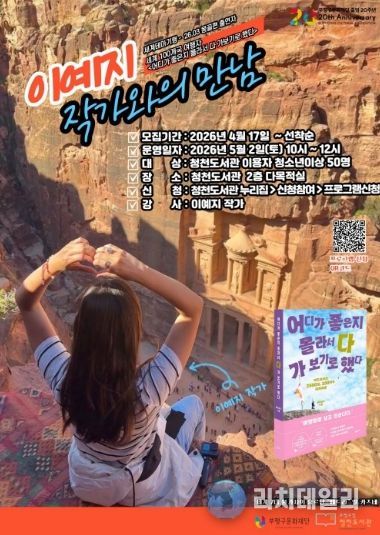 참가 신청은 17일부터 선착순으로 접수하며, 청천도서관 누리집 ‘신청·참여’ 메뉴 또는 전화를 통해 신청할 수 있다.