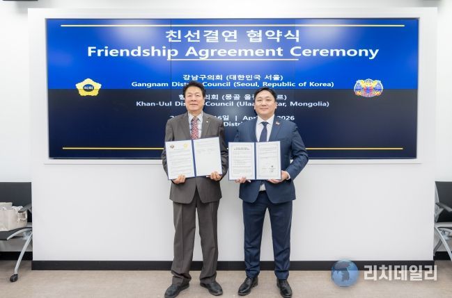 리치데일리 김상현 기자 | 강남구의회는 16일 오전 강남구의회를 내방한 몽골 항올구시민대표회의(의장 바트-오르길) 대표단을 접견하고 협약을 체결했다.