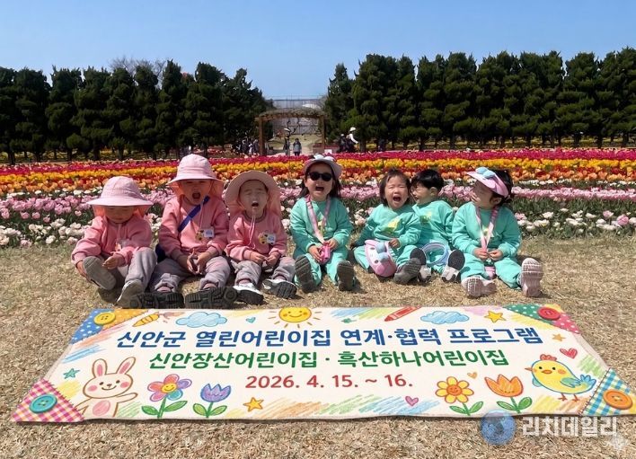 리치데일리 김상현 기자 | 신안군 국공립 어린이집인 흑산하나어린이집과 신안장산어린이집이 4월 15일부터 16일까지 1박 2일 일정으로 임자면 ‘2026 섬 튤립축제’를 방문하고, 열린어린이집 간 연계·협력 공동 캠핑 프로그램을 운영했다.