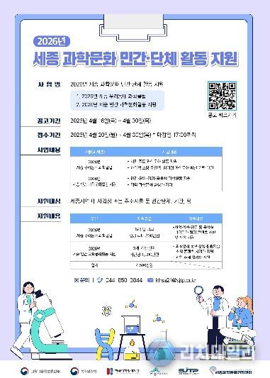 사업 참여를 희망하는 단체는 4월 30일 오후 5시까지 세종과학문화거점센터 홈페이지를 통해 접수하면 된다.