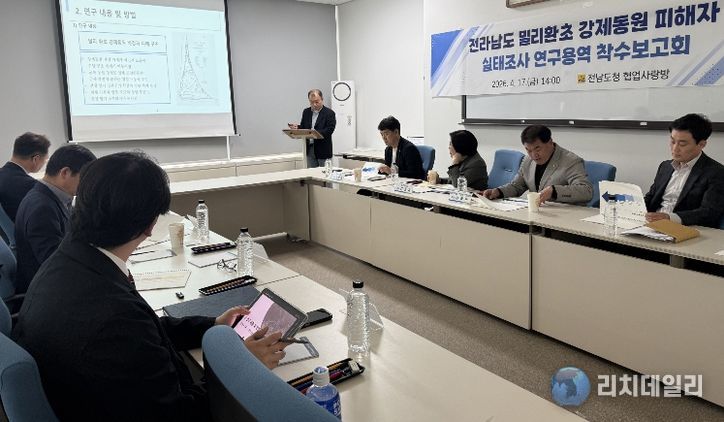 리치데일리 김상현 기자 | 전라남도는 일제 강제 동원 피해 진상규명과 국가 차원의 보상지원 건의를 위해 17일 도청에서 밀리환초 강제 동원 피해자 실태조사 연구용역 착수보고회를 개최했다.