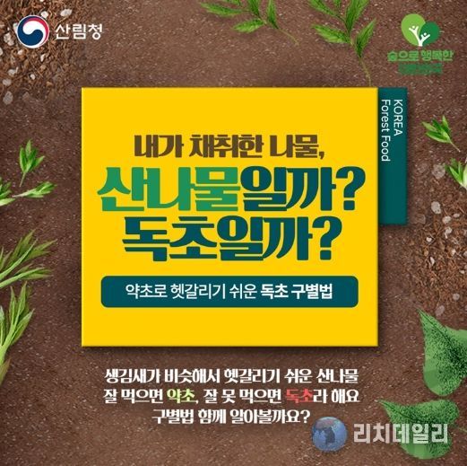 "독초와 산나물을 잘 구별해 올바른 봄철 산나물 섭취하시길 바라며 정확한 식물 구별이 어려운 경우에는 식용을 삼가주세요!"