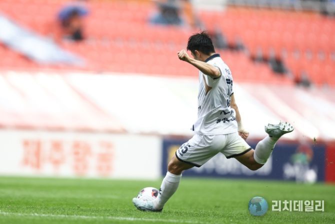 위기 뒤 곧바로 기회가 찾아왔다. 전반 27분, 제주 페널티박스 앞에서 박태준이 절묘한 드리블로 상대 파울을 유도했다. 이어진 프리킥을 직접 슈팅으로 처리했고, 수비벽에 굴절된 공이 그대로 골문으로 빨려들어가며 1대 0 리드를 잡고 전반을 마쳤다.
