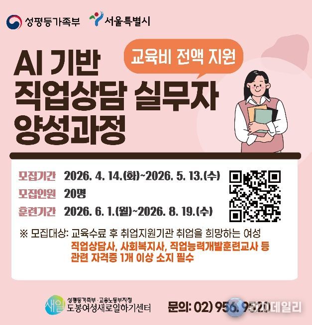 리치데일리 김상현 기자 | 서울 도봉구가 도봉여성센터에서 ‘AI 기반 직업상담 실무자 양성과정’을 운영한다고 밝혔다. 대상은 직업상담사, 사회복지사, 직업능력개발훈련교사 등의 자격증을 소지하고, 취업지원 분야로 취업을 희망하는 여성 구직자다.