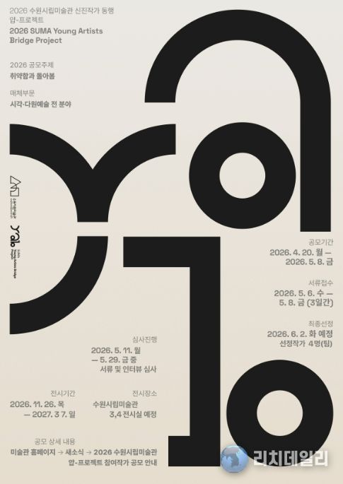 리치데일리 김상현 기자 | 경기도 수원시립미술관은 신진작가 발굴 및 창작 지원을 위한 공모 사업‘신진작가 동행 얍-프로젝트(YAB-Project)’를 개최하고 4월 20일부터 5월 8일까지 참여자 모집 공고를 시작한다. 서류 접수는 5월 6일부터 5월 8일 오후 6시까지 이메일을 통해 진행된다.