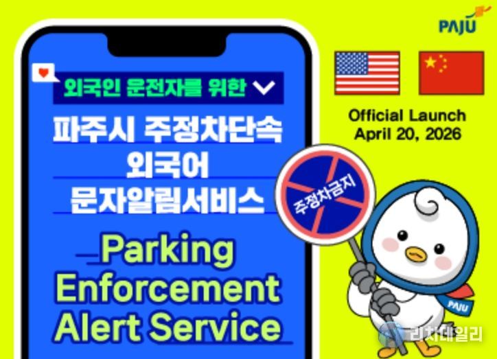 이번 서비스는 주정차 금지 구역에 차량을 세운 운전자에게 실시간으로 단속 상황을 안내해 자발적인 차량 이동을 유도함으로써 과태료 부과를 사전에 방지하기 위한 기존 제도를 외국인까지 확대한 조치로, 최근 파주시 내 외국인 거주자와 운전자가 꾸준히 증가하는 추세를 적극 반영한 결과다.