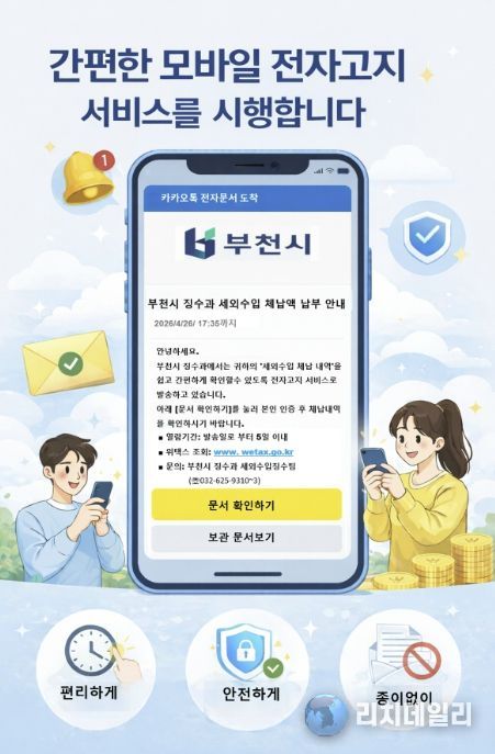 부천시 징수과장은 “모바일 전자고지 도입으로 고지서 전달의 정확성과 납부 편의가 높아질 것으로 본다”며 “앞으로도 시민 중심의 납세 서비스를 지속 확대하겠다”고 말했다.