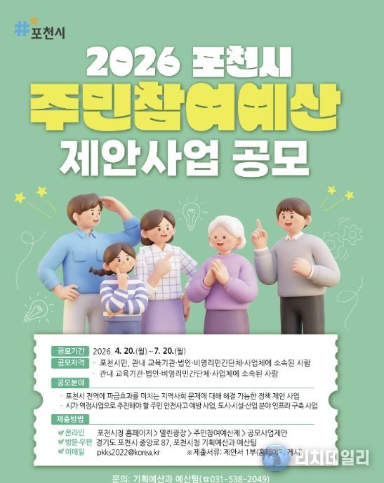 리치데일리 김상현 기자 | 포천시가 4월 20일부터 오는 7월 20일까지 2027년도 예산편성을 위한 주민참여예산 공모제안사업을 접수하고 있다.