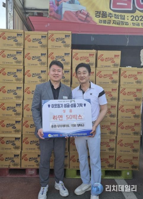 리치데일리 김상현 기자 | 양평군 용문면은 지난 19일, 용문면 소재 용문식자재마트가 관내 어려운 이웃을 위해 라면 50박스를 기부했다고 밝혔다.