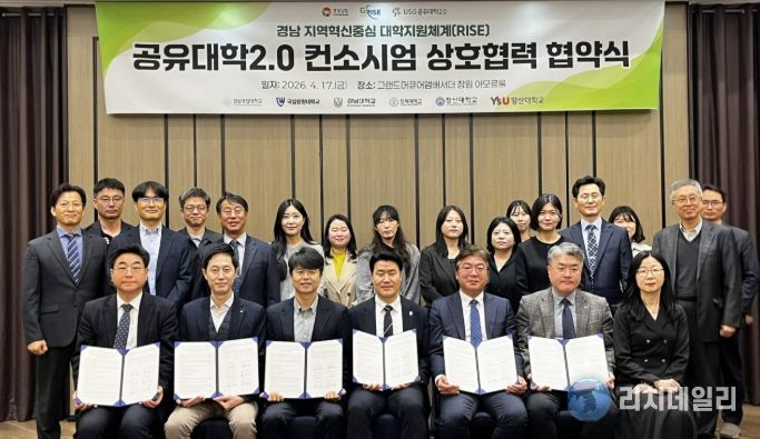 리치데일리 김상현 기자 | 경상국립대학교 라이즈(RISE) 사업단 지역교육혁신센터는 4월 17일 창원 그랜드머큐어호텔에서 ‘공유대학2.0 컨소시엄 과제’ 참여대학 간 상호 협력 협약(MOU)을 체결했다.