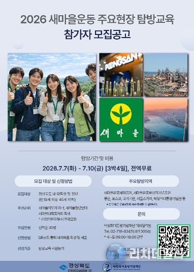 리치데일리 김상현 기자 | 경상북도와 박정희대통령기념재단은 청년세대의 새마을운동에 대한 이해도를 높이고 가치 확산을 위해 ‘2026 새마을운동 주요현장 탐방교육’을 운영하고 참가자를 모집한다.