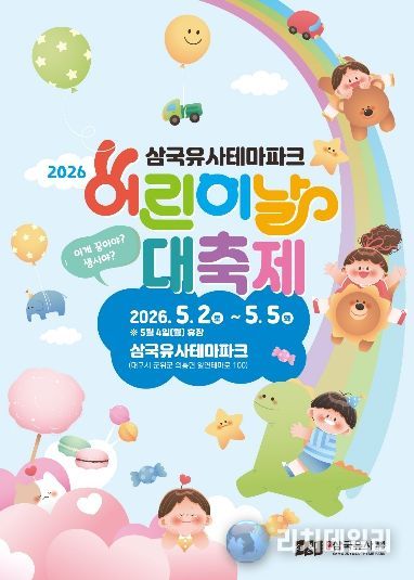 리치데일리 김상현 기자 | 군위문화관광재단(대표이사 사공정한)은 다가오는 어린이날을 맞아 오는 5월 2일부터 5월 5일까지 3일간(5월 4일 월요일 휴장) 삼국유사테마파크에서‘2026 어린이날 대축제’를 개최한다.