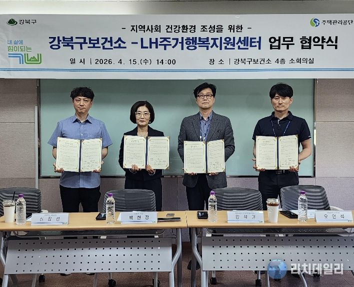 리치데일리 김상현 기자 | 서울 강북구는 지난 15일 강북구보건소에서 번동2·3·5단지 LH주거행복지원센터와 지역사회 건강환경 조성을 위한 업무협약(MOU)을 체결했다고 밝혔다.