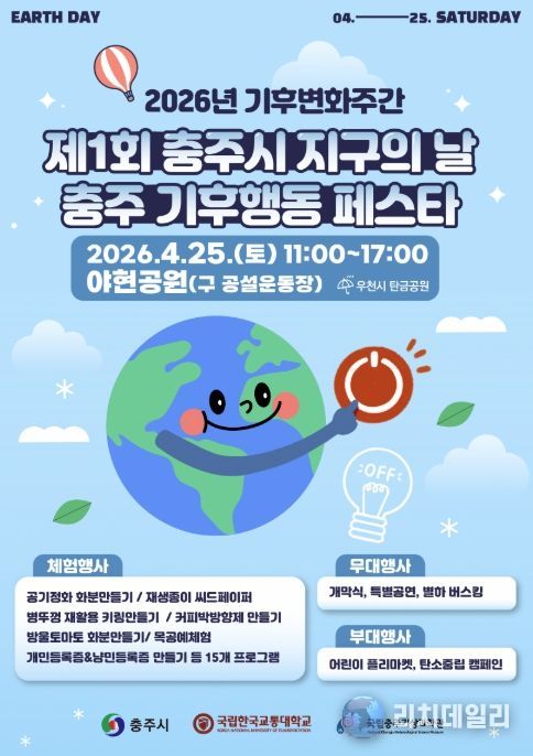리치데일리 김상현 기자 | 충주시는 25일 오전 11시 야현공원(구 공설운동장) 일원에서 ‘2026년 기후변화주간’을 기념해 ‘제1회 충주시 지구의 날’ 행사를 개최한다고 21일 밝혔다.