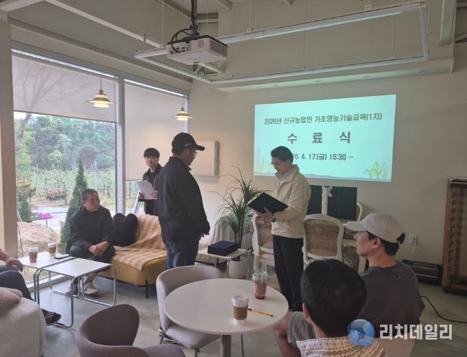 리치데일리 김상현 기자 | 충주시는 지난 17일 엄정면 소재 과일꽃팜핑농장에서 ‘2026년 신규농업인 기초영농기술교육(1차) 수료식’을 개최하며 예비 농업인들의 성공적인 첫걸음을 응원했다.