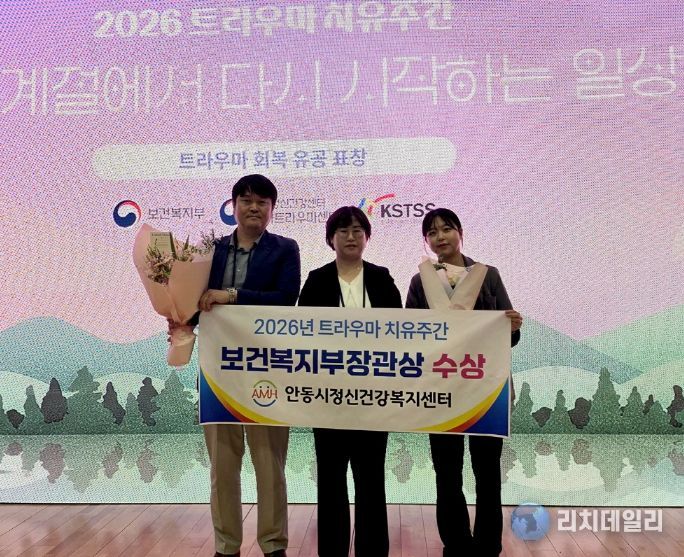리치데일리 김상현 기자 | 안동시정신건강복지센터는 20일 국립정신건강센터에서 열린 보건복지부 주최 ‘2026년 트라우마 치유주간’ 시상식에서, 산불 재난 경험자의 심리 회복을 위해 헌신한 공로를 인정받아 보건복지부 장관 표창을 수상했다고 밝혔다.