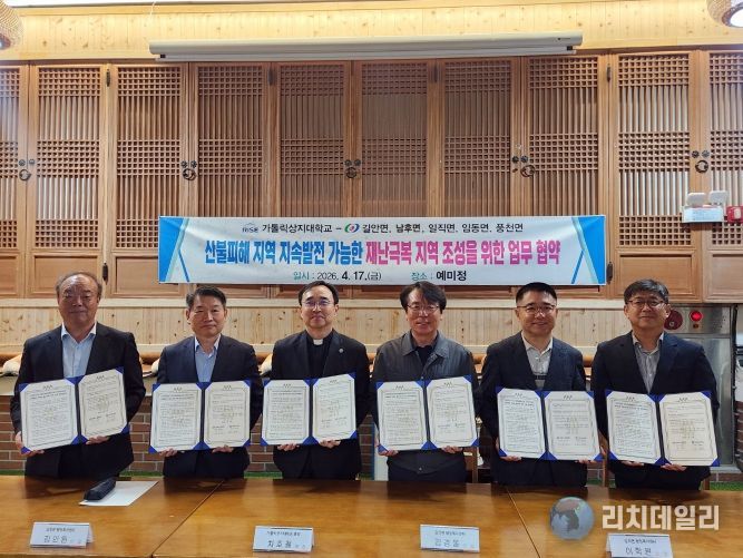 이번 협약은 경상북도가 주관하는 지역혁신중심 대학지원체계(RISE) 사업에 선정된 데 따른 것으로, 가톨릭상지대학교는 오는 2029년까지 5년간 총 25억 원의 사업비를 투입해 산불 피해지역 주민을 대상으로 ‘대학동행 산지 대전환’ 과제를 수행하게 된다.