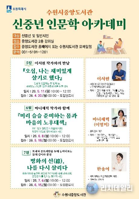 리치데일리 김상현 기자 | 수원시 중앙도서관이 5월부터 7월까지 매달 1회 운영하는 ‘신중년 인문학 아카데미’ 수강생을 모집한다.