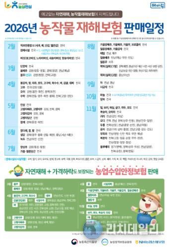4월부터 벼·대파·고추 등을 시작으로 품목별로 순차 가입이 가능하며, 가입을 바라는 농업인은 가까운 농·축협이나 원예농협에 신청할 수 있다.