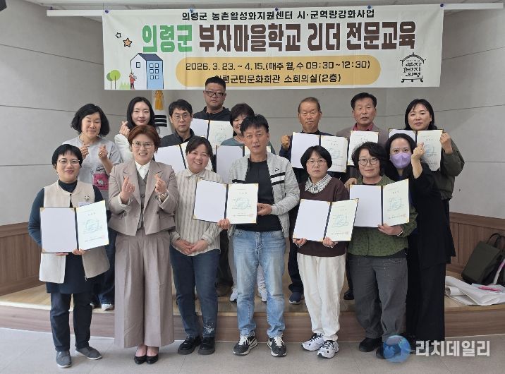 리치데일리 김상현 기자 | 의령군은 지난 3월부터 추진해 온 ‘2026년 부자마을학교 리더 전문교육’을 마무리하고 12명의 수료생을 배출했다고 밝혔다.