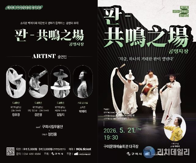 리치데일리 김상현 기자 | 구미시는 5월 21일 오후 7시 30분, 구미시문화예술회관 대공연장에서 ‘제70회 구미시립무용단 정기공연 '판-共鳴之場공명지장'’을 개최한다.