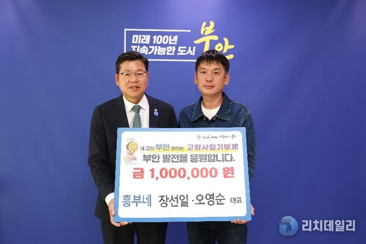 리치데일리 김상현 기자 | 부안군은 지난 20일 관내에서 한식당 ‘흥부네’를 운영하는 장선일·오영순 대표가 고향사랑기부금 100만원을 기탁했다고 밝혔다.