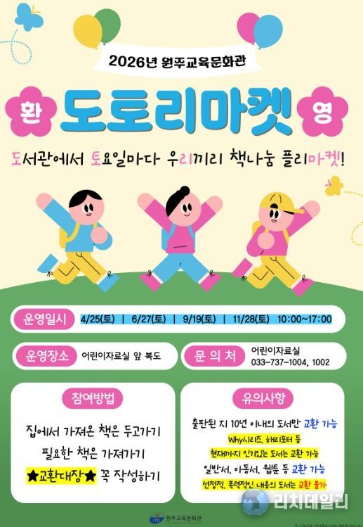 리치데일리 김상현 기자 | 원주교육문화관은 4월 25일부터 책나눔 ‘도토리마켓’을 운영한다.