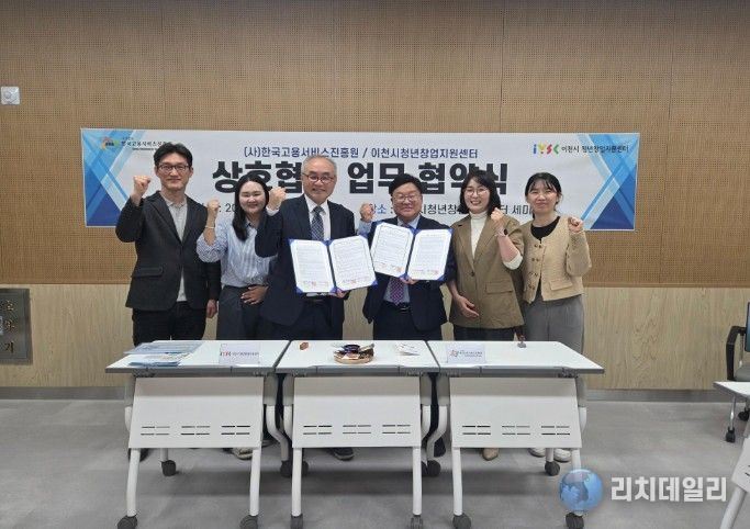 리치데일리 김상현 기자 | 이천시는 청년 취업 및 창업 지원 강화를 위해 사단법인 한국고용서비스진흥원과 이천시 청년창업지원센터가 지난 4월 15일 센터 세미나실에서 업무협약(MOU)을 체결했다고 밝혔다.
