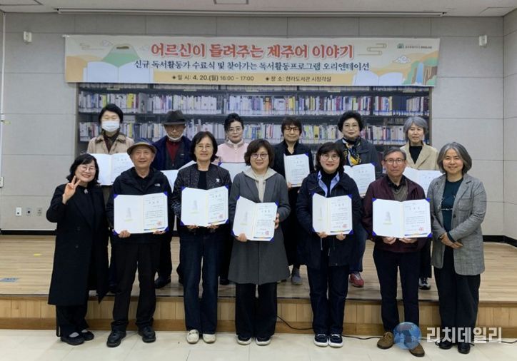 제주도 한라도서관은 20일 도서관 강의실에서 올해 ‘어르신이 들려주는 제주어 이야기’ 신규 활동가 양성과정 수료식을 열었다.